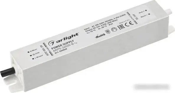 Блок питания Arlight ARPV-24020-B отличается ультратонким корпусом из пластика, что позволяет удобно размещать его в ограниченных пространствах. Он поддерживает широкий диапазон входного напряжения 100-240 В и обеспечивает стабильное выходное напряжение 24 В с мощностью 20 Вт. Выходной ток составляет 0.83 мА, что подходит для небольших устройств и освещения. Благодаря степени защиты IP67, блок питания устойчив к пыли и влаге, его можно использовать в различных условиях. Размеры: длина 162 мм, ширина 25 мм, высота 27 мм — устройство компактное и лёгкое. Провода легко подключаются через стандартные разъемы, что облегчает монтаж и обслуживание. Устройство автоматически стабилизирует питание, предотвращая сбои. Высокая надежность обеспечивает долгий срок службы в различных условиях эксплуатации.