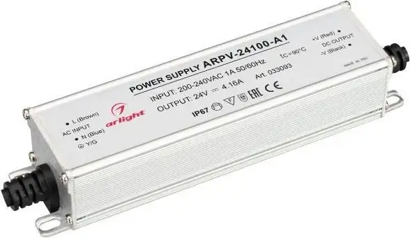 Блок питания Arlight ARPV-24100-A1 обеспечивает стабильное питание устройств с выходным напряжением 24 В и мощностью до 100 Вт. Он имеет прочный корпус из пластика с защитным кожухом по стандарту IP67, что делает его устойчивым к пыли и влаге. Устройство подключается через проводной разъем и подходит для различных монтажных условий. Входное напряжение варьируется от 200 до 240 В, что обеспечивает универсальность использования. Блок питания значительно уменьшает риск короткого замыкания и повреждений благодаря своей надежной конструкции. Он имеет компактные размеры: длина 152 мм, ширина 37.5 мм и высота 31 мм. Благодаря высокой степени защиты его можно устанавливать в сложных условиях без опасений за долговечность. Эта модель идеально подходит для установки в автоматике, освещении и других системах, требующих стабильного источника питания.