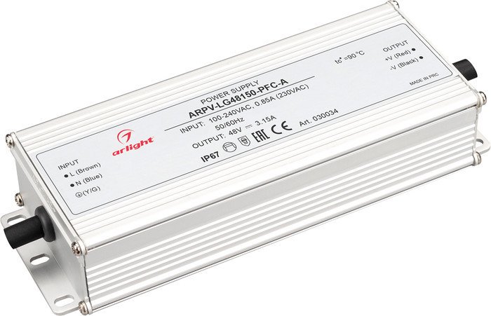 Блок питания Arlight ARPV-LG 030034 выполнен из прочного алюминия и обеспечивает надежную работу. Он работает с входным напряжением 100–240 В и выдаёт стабильное выходное напряжение 48 В. Мощность устройства составляет 150 Вт, что подходит для различных световых систем. Благодаря уровню защиты IP67, блок полностью защищён от пыли и влаги, что позволяет использовать его на открытом воздухе. Размеры устройства: длина 180 мм, ширина 67,5 мм и высота 35,5 мм, что делает его компактным и удобным для монтажа. Он легко подключается и надёжно работает длительное время. Блок питания обеспечивает стабильную работу оборудования и защищает его от перепадов напряжения. Он идеально подходит для уличных осветительных систем и промышленных объектов.