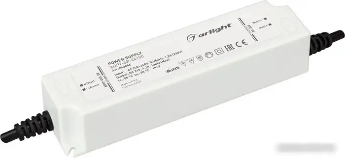 Блок питания Arlight ARPV-SP-24100 обеспечивает стабильную работу с входным напряжением 200–240 В и выходом 24 В. Он имеет защитный пластиковый корпус с стандартным кожухом, что помогает оградить устройство от пыли и влаги благодаря степени защиты IP67. Блок способен выдавать мощность до 100 Вт и обеспечивает выходной ток 4,2 мА. Его габариты составляют 162,5 мм в длину, 42,5 мм в ширину и 32 мм в высоту, что делает его компактным и удобным для монтажа. Устройство подключается через проводной разъем, что обеспечивает надежное соединение. Он подходит для различных промышленных и бытовых приложений, где важна долгосрочная стабильность и защита от окружающей среды. Также блок питания оснащен стандартным корпусом из пластика, что снижает его вес и повышает удобство эксплуатации. Этот блок питания отлично справляется с задачами, где требуется высокая надежность и защита от пыли и влаги.