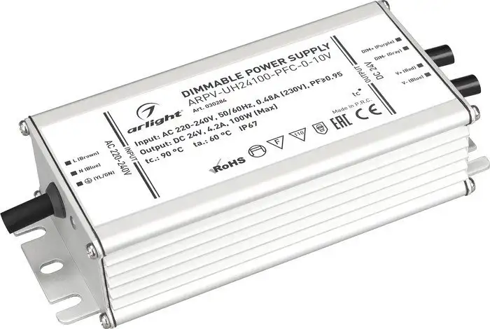 Блок питания Arlight ARPV-UH 030284 выполнен из прочного алюминия, что обеспечивает долговечность и надежность. Он предназначен для питания устройств при входном напряжении 220-240 В и выдает стабильное выходное напряжение 24 В. Мощность устройства составляет 100 Вт, что подходит для различных комбинаций устройств. Степень защиты IP67 гарантирует защиту от пыли и влаги, позволяя использовать блок в различных условиях. Размеры блока — 158 мм в длину, 67,5 мм в ширину и 38,5 мм в высоту, он легко помещается в ограниченные пространства. Встроенная защита помогает обеспечить безопасность и стабильную работу подключенных устройств. Простая установка и надежность делают его популярным выбором для LED-освещения и других систем. Благодаря качественной сборке, блок питания долго сохраняет свои характеристики. Он обеспечивает стабильное питание и защищает оборудование от сбоев.