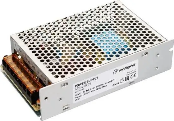 Блок питания Arlight ARS-200-24 обеспечивает стабильное питание устройств с выходным напряжением 24 В и мощностью 200 Вт. Он легко подключается через клеммы и подходит для установки в стандартных корпусах с защитным кожухом. Этот блок питания работает при входном напряжении 220–240 В и эффективно преобразует его в энергетику для ваших устройств. Благодаря компактным размерам (длина 160 мм, ширина 98 мм, высота 42 мм) его удобно размещать в ограниченных пространствах. Он обладает высокой надежностью с защитой от пыли и влаги по стандарту IP20. Устройство имеет небольшую выходную силу тока — 8.3 мА при 24 В, что подходит для большинства телекоммуникационных и световых систем. Простое подключение и надежная работа делают его хорошим выбором для домашнего и коммерческого использования.