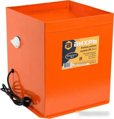 Измельчитель зерна Вихрь ИК 3в1 сочетает в себе мощность и удобство в использовании. Его электрический двигатель мощностью 1.35 кВт быстро перерабатывает зерно, корнеплоды и траву. Благодаря ножам и ситу он измельчает материал до нужной степени, а контейнер на 10 литров позволяет работать длительное время без частого опустошения. Устройство удобно и компактно, весит всего 7 кг, легко перемещается и монтируется. В комплект входит нож для зерна, универсальный нож для травы и корнеплодов и сито, что расширяет его возможности. Он идеально подходит для фермерских хозяйств и домашнего использования. Корпус изготовлен из прочной стали для долговечности и надежной работы. Энергопитание — однофазное подключение, что делает его удобным в использование. Такой измельчитель помогает быстро подготовить корма и зерно для дальнейшей обработки или кормления животных.