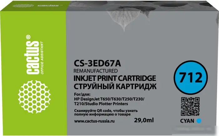 Картридж CACTUS CS-3ED67A — это хороший аналог оригинального картриджа HP 712 3ED67A. Он предназначен для принтеров HP DJ T230 и T630, что делает его удобным для домашнего или офисного использования. Этот картридж наполняется водорастворимыми чернилами голубого цвета с объемом 29 мл, обеспечивая яркие и четкие изображения. Картридж не является оригиналом, но полностью совместим с указанными моделями принтеров. Он легко устанавливается и обеспечивает стабильную печать. Такой картридж помогает снизить затраты, не уступая по качеству оригинальному. Он быстро помогает получить яркую и насыщенную печать без лишних хлопот. Используйте его для печати документов и фотографий с хорошими цветами. Благодаря простоте замены он подходит для регулярной работы.
