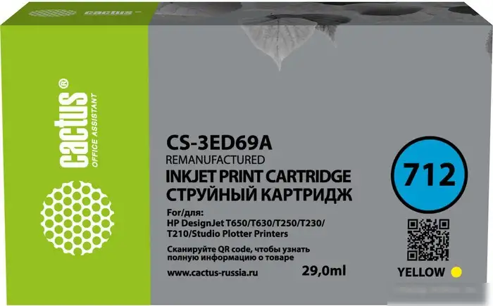 Этот картридж CACTUS CS-3ED69A подходит для печати ярких и качественных изображений на совместимых моделях HP DJ T230 и T630. Он использует водорастворимые чернила объемом 29 мл, что обеспечивает насыщенные цвета и долговечность печати. Картридж является аналогом оригинального HP 712 3ED69A, что позволяет сэкономить без потери качества. Удобная замена и совместимость делают его простым в использовании. Он подходит для тех, кто хочет получать яркие рисунки и тексты на принтере. Карtridge не комплектуется дополнительными картриджами и не является оригиналом, что снижает стоимость. Водорастворимые чернила препятствуют расплыванию изображения, увеличивая четкость. Объем картриджа позволяет печатать много страниц один раз. Простая установка обеспечивает быстрый старт работы. В этом картридже собраны хорошие функции для домашней или офисной печати.