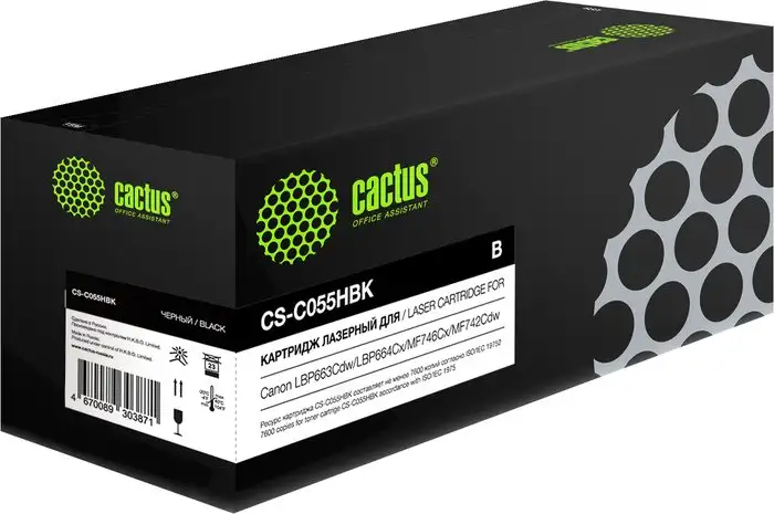 Картридж CACTUS CS-C055HBK предназначен для лазерной печати и подходит к моделямCanon LBP663Cdw, LBP664Cx, MF746Cx, MF742Cdw и MF744Cdw. Он обеспечивает чёрную печать и рассчитан на печать до 7 600 страниц. Этот картридж не является оригинальным и комплект не поставляется. Он легко устанавливается и подходит для совместимых лазерных принтеров. Благодаря высокому ресурсу, вы сможете долго использовать устройство без частой замены. Карtridge не содержит в комплекте дополнительных компонентов. Он работает стабильно и обеспечивает качественные чёрные отпечатки. Устройство дает четкое изображение и быстро выполняет печать. Такой картридж — удобное решение для домашнего и офисного использования.