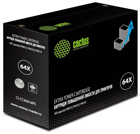 Картридж CACTUS CS-CC364X-MPS создает качественные лазерные отпечатки и подходит для множества моделей HP LaserJet, таких как P4010 и P4515. Он обеспечивает яркий черный цвет и ресурс до 30 000 страниц, что подходит для больших объемов печати. Этот картридж является аналогом оригинального и не входит в комплект, что делает его более доступным. Устройство просто устанавливается в совместимый принтер и быстро начинает работу. Холостых деталей или сложных настроек при использовании не потребуется. Благодаря высокому ресурсу, он уменьшает частоту замены и снижает общие затраты. Он не содержит оригинальные компоненты, что делает его хорошим решением для тех, кто ищет экономичный вариант. Картридж обеспечивает стабильное качество печати на практике и легко совместим с поддерживаемыми моделями.