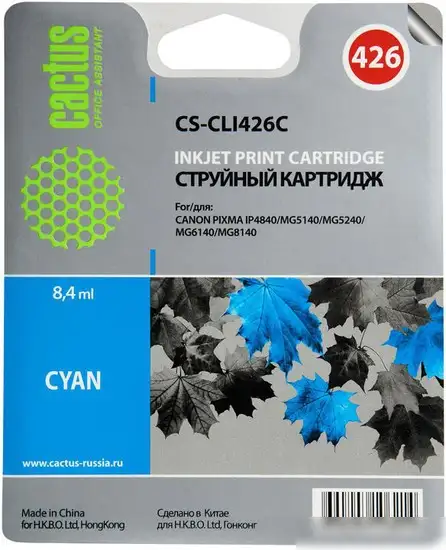 Картридж CACTUS CS-CLI426C совместим с несколькими моделями принтеров Canon, такими как PIXMA MG5140, MG5240, MG6140, MG8140 и MX884. Он использует струйную технологию печати и не является оригинальным продуктом. Цвет картриджа — циан, что позволяет создавать яркие изображения и четкий текст. Ресурс картриджа составляет около 800 страниц, что обеспечивает долгую работу без частой замены. Объем чернила — 8,4 мл, что помогает печатать много страниц за один раз. Благодаря качественной краске и большому ресурсу, картридж обеспечивает насыщенные цвета и стойкость отпечатков. Он легко устанавливается и совместим с выбранными моделями принтеров. Этот картридж отлично подходит для дома и офиса, помогая быстро и удобно печатать документы. Его использование позволяет снизить расходы на печать без потери качества.