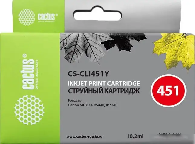 Этот картридж CACTUS CS-CLI451Y подходит для принтеров Canon PIXMA, такие как iP7240, MG5440 и MG6340 (Pixma MG7540). Он выполнен на базе водорастворимых чернил, что обеспечивает яркие и насыщенные цвета. Объем картриджа составляет 9.8 мл, этого хватает для печати большого количества документов и фотографий. Этот картридж является аналогом оригинала CLI-451Y, что помогает сэкономить расходы без потери качества. Он легко устанавливается и быстро начинает работать. В отличие от оригинального, он не является производителем Canon, но полностью совместим с указанными моделями. Такой картридж подходит для домашних и офисных задач. Он обеспечивает качественную печать без пропусков и задержек. Благодаря нему вы можете печатать яркие изображения и документы высокого качества.