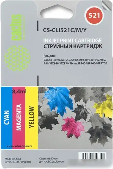 Картридж CACTUS CS-CLI521C/M/Y (аналог Canon CLI-521 C/M/Y Multipack)