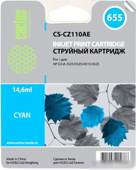 Картридж CACTUS CS-CZ110AE подходит для печати на нескольких моделях принтеров HP Deskjet Ink Advantage, таких как 3525, 4615, 4625, 5525 и 6525. Он использует струйную технологию и не является оригинальным, что помогает снизить стоимость печати. Объем картриджа составляет 14,6 мл, что обеспечивает длительную работу без частой замены. Этот картридж печатает яркими и насыщенными цветами благодаря цвету циан. Он легко устанавливается в совместимый принтер и быстро дает старт печати. Благодаря высокому качеству пигментов, изображение получается чётким и насыщенным. Использование этого картриджа позволяет выполнить множество страниц с хорошим качеством. Он помогает сэкономить деньги без потери качества печати. Для удобства установки и эксплуатации, картридж совместим с несколькими моделями принтеров HP, что делает его универсальным выбором.