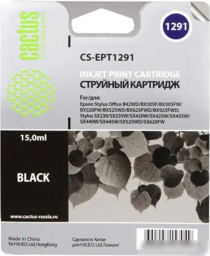 Картридж CACTUS CS-EPT1291 предназначен для струйных принтеров Epson и не является оригиналом. Он использует пигментные чернила, которые обеспечивают стойкое качество печати. Этот картридж подходит для моделей, таких как Epson Stylus Office и Epson Stylus SX, и легко устанавливается в совместимые устройства. Его ресурс — около 440 страниц при стандартной загрузке, что позволяет использовать его долго без частой замены. Объем чернил — 15 мл, что обеспечивает насыщенные и четкие изображения. КарTRIDЖ легко заправляется и обеспечивает высокую стабильность работы. Он помогает получить яркие и четкие тексты и графику. Этот товар — хорошая альтернатива оригинальным картриджам по цене и качеству.