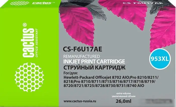 Картридж CACTUS CS-F6U17AE – это совместимый заменитель оригинального HP F6U17AE, выполненный по струйной технологии. Он предназначен для печати в многих моделях принтеров HP OfficeJet Pro, таких как 7740, 8210, 8710, 8720 и другие. Объем чернил составляет 26 мл, что обеспечивает длительную работу без частой замены. Картина получается яркой и насыщенной благодаря картриджу с мажентовым цветом. Он не является оригинальным продуктом, но обеспечивает стабильное качество печати. Карридж поставляется в виде одного элемента без комплекта, что просто и удобно для замены.