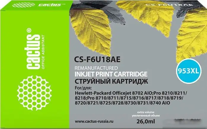 | Аналог оригинального картриджа | 953XL [F6U18AE] |