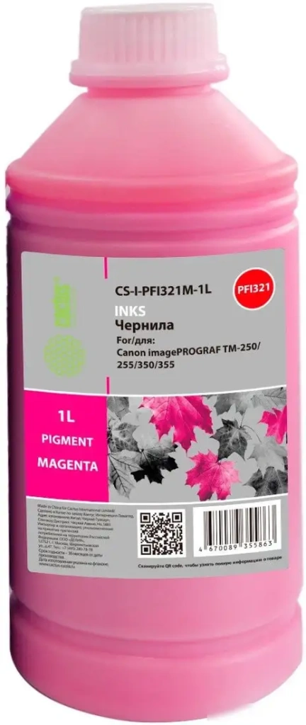 Чернила CACTUS CS-I-PFI321M-1L обеспечивают яркие и насыщенные цвета благодаря качественной мажентовой краске. Объем 1000 мл позволяет долго использовать безчастых замен. Они совместимы с популярными моделями принтеров Canon ImagePrograf, такими как TM-250, TM-255, TM-350 и TM-355. Благодаря технологи струйной печати они легко наносятся и обеспечивают четкое изображение. Эти чернила подходят для печати различных изображений и документов, сохраняя качество и цветовую насыщенность. Они не являются оригиналом, что позволяет снизить расходы при сохранении высокого качества. Чернила подходят для широкоформатной печати, что удобно для профессионального использования. Просты в использовании и предназначены для тех, кто ценит хорошее качество отпечатков. Выбирая CACTUS CS-I-PFI321M-1L, вы получаете надежное решение для печати ярких изображений.