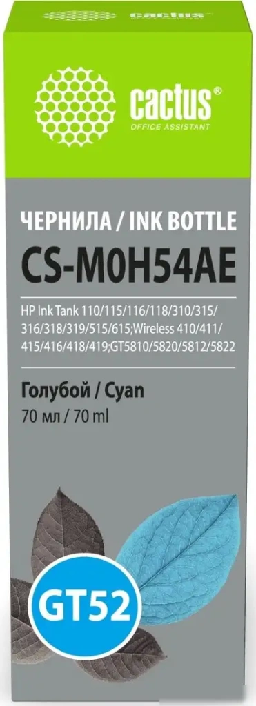Чернила CACTUS CS-M0H54AE GT52 (голубой)