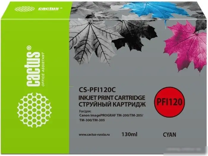 Картридж CACTUS CS-PFI120C подходит для принтеров Canon imagePROGRAF TM-200, TM-205, TM-300 и TM-305. Он использует струйную технологию печати, что обеспечивает яркие и четкие изображения. Объем картриджа составляет 260 мл, что позволяет долго печатать без частой замены. Этот картридж является аналогом оригинального Canon PFI120C, но при этом не является оригиналом и не поставляется в комплекте. Цвет — циан, что важно для цветной печати. Он подходит для тех, кто ищет качественную печать по более доступной цене. Установка проста и быстро выполняется. Картридж обеспечивает устойчивую работу принтера и яркие цвета рисунков. Благодаря совместимости с популярными моделями, он отлично подходит для офисного использования.