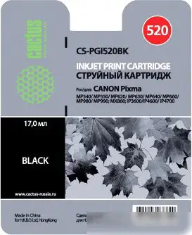 Картридж CACTUS CS-PGI520BK подходит для принтеров Canon PIXMA и обеспечивает качественную печать. Он использует струйную технологию и не является оригинальным, что помогает снизить стоимость печати. Этот картридж содержит 17 мл чернил и рассчитан на примерно 344 страницы при заполнении на 5%. Он совместим с моделями, такими как PIXMA iP3600, MP540, MX860 и другими. Пользователи получают яркие и четкие изображения благодаря качественной краске. Картридж легко устанавливается и быстро заправляется, что позволяет экономить время. Он подходит для печати документов и фотографий высокого качества. Надежность и простота использования делают его хорошим выбором для домашнего и офисного использования.