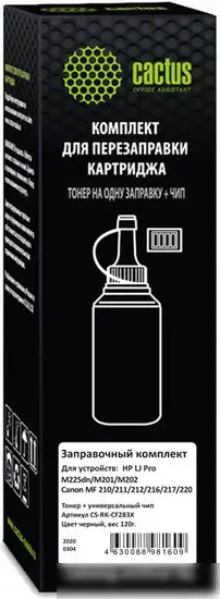 Тонер CACTUS CS-RK-CF283X используется для лазерной печати, обеспечивая яркие и четкие изображения. Он совместим с принтерами HP LJ Pro M225dn, M201, M202 и Canon MF 210, 211, 212, 216, 217, 220, что делает его универсальным решением. Тонер выполнен в черном цвете, его вес 120 г, что позволяет экономно расходовать ресурс. Он быстро наносит тонер на бумагу, повышая скорость печати. Простая замена помогает сохранять удобство и минимизирует время остановки работы. Использование качественного тонера обеспечивает длительный срок службы печати. Технология лазерной печати гарантирует точность и детализацию изображений.
