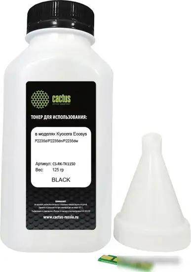 Тонер CACTUS CS-RK-TK1150 предназначен для лазерных принтеров Kyocera Ecosys P2235d, P2235dn, P2235dw и M2735dw. Он обеспечивает качественную печать черными чернилами и легко устанавливается в совместимые модели. Этот тонер не является оригинальным и не входит в комплект картриджей, что помогает снизить стоимость печати. Вес устройства составляет 125 г, оно удобно в хранении и использовании. Тонер подходит для повседневных задач и обеспечивает четкие изображения и текст. Он способствует стабильной работе принтера и высокому качеству печати. Благодаря совместимости с популярной техникой Kyocera он является хорошим выбором для офисов и дома. Простота в применении позволяет быстро заменить расходный материал. Тонер CACTUS обеспечивает надежную работу и хорошее качество печати без лишних хлопот.