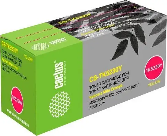 Картридж CACTUS CS-TK5230Y — это совместимый лазерный картридж желтого цвета, предназначенный для принтеров Kyocera Mita ECOSYS. Он не является оригинальным, но полностью совместим с моделями ECOSYS M5521cdn, M5521cdw, P5021cdn и P5021cdw. Этот картридж обеспечивает яркие и насыщенные цвета при печати. Он рассчитан на восстановление до 2 600 страниц, что позволяет пользователю нечасто менять расходный материал. В отличие от оригиналов, он стоит дешевле, что делает его выгодным выбором. Прост в установке и использовании, не требует специальных знаний. Обеспечивает стабильное качество печати с четкими линиями. Не содержит комплектных деталей — заменяется полностью. Он подходит для тех, кто ищет надежный и экономичный картридж для постоянной печати. При этом обеспечивает высокий ресурс и хорошее качество изображений.