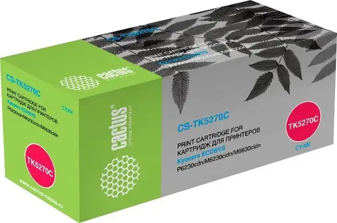 Этот картридж CACTUS CS-TK5270C — отличный аналог оригинального Kyocera TK-5270C, предназначен для лазерной печати. Он не входит в комплект и не является оригиналом, что помогает сэкономить без потери качества. Цвет картриджа — циан, что позволяет получать яркие и насыщенные изображения. Ресурс картриджа составляет 6 000 страниц, что обеспечивает длительную работу без замены. Он совместим с принтерами KYOCERA ECOSYS M6230cidn, M6630cidn и P6230cdn. Такой картридж легко устанавливать и он обеспечивает стабильное качество печати. Он подходит для высоконагруженных офисных задач, делая печать быстрой и эффективной. Благодаря большому ресурсу вы меньше будете заниматься заменой расходных материалов. Он идеально подходит для тех, кто ищет бюджетное решение без потери качества.