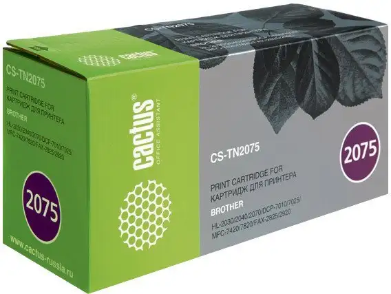 Картридж CACTUS CS-TN2075 совместим с множеством моделей Brother, включая принтеры, МФУ и факсы. Он обеспечивает черную печать ярких и четких документов благодаря своему лазерному типу. Оригинальный картридж не используется, что помогает снизить расходы без потери качества. Его ресурс составляет примерно 2 500 страниц, что удобно для регулярной работы. Прост в установке и совместим с популярными устройствами Brother, такими как DCP, HL, MFC и FAX. Он быстро собирает пленку и предотвращает засоры при печати. Картридж оснащен технологией, которая обеспечивает стабильную работу устройства. Использование этого картриджа помогает поддерживать высокое качество печати долгое время.