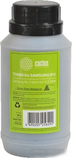Тонер CACTUS CS-TSG2-100 предназначен для лазерных принтеров и легко устанавливается. Он обеспечивает чёрный цвет печати, подходит для моделей Samsung ML-2160, ML-2165 и SCX-3400. Вес контейнера составляет 100 г, что позволяет делать множество страниц за один заправка. Тонер не является оригиналом, но совместим с указанными моделями принтеров. Он быстро распыляется на бумагу и помогает добиться четких изображений и текстов. Использование этого тонера упрощает процесс печати и снижает затраты. Он оптимально подходит для дома и малого офиса. Тонер обеспечивает стабильное качество печати без повреждений принтера. Благодаря простоте установки, оно подойдет даже новичкам.