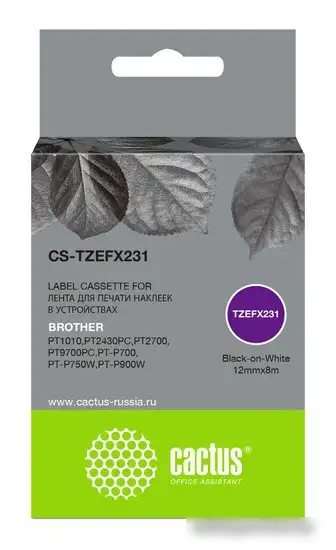 | Аналог оригинального картриджа | TZe-FX231 (12 мм, 8 м) |