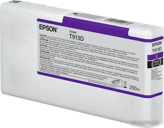 Картридж Epson C13T913D00 — это оригинальный фиолетовый картридж объемом 200 мл, предназначенный для использования с принтером Epson SureColor SC-P5000. Он обеспечивает качественную струйную печать ярких и насыщенных цветов, что идеально подходит для профессиональных задач. Карtridge легко устанавливается и совместим с конкретной моделью принтера, гарантируя надежную работу. Использование оригинального картриджа предотвращает проблемы с качеством печати и обеспечивает долгий срок службы устройства. Благодаря экологичной технологии, картридж сохраняет стабильную работу и минимизирует риск засорения. Его объем в 200 мл позволяет печатать большое количество страниц без замены. Удобная конструкция упрощает замену и обслуживание. Такой картридж подходит для тех, кто ценит высокое качество и надежность при выполнении принтерных задач.