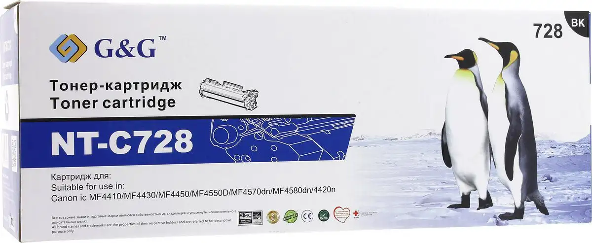 Картридж G&G NT-C728 предназначен для черно-белой лазерной печати и совместим с моделями принтеров Canon i-SENSYS MF4410, MF4430, MF4450, MF4550d, MF4570dn и MF4580dn. Он не является оригинальным, но полностью заменяет оригинальный картридж Canon 728. Обеспечивает высокое качество печати, печатая до 2100 страниц. Удобен в использовании и подходит для офисных объемов работы. Благодаря совместимости, легко устанавливается и работает без ошибок. Картридж помогает экономить средства, не уступая по качеству оригиналу. Он является хорошим выбором для тех, кто ценит надежность и экономию. Прост в установке и заменяет стандартный расходный материал.