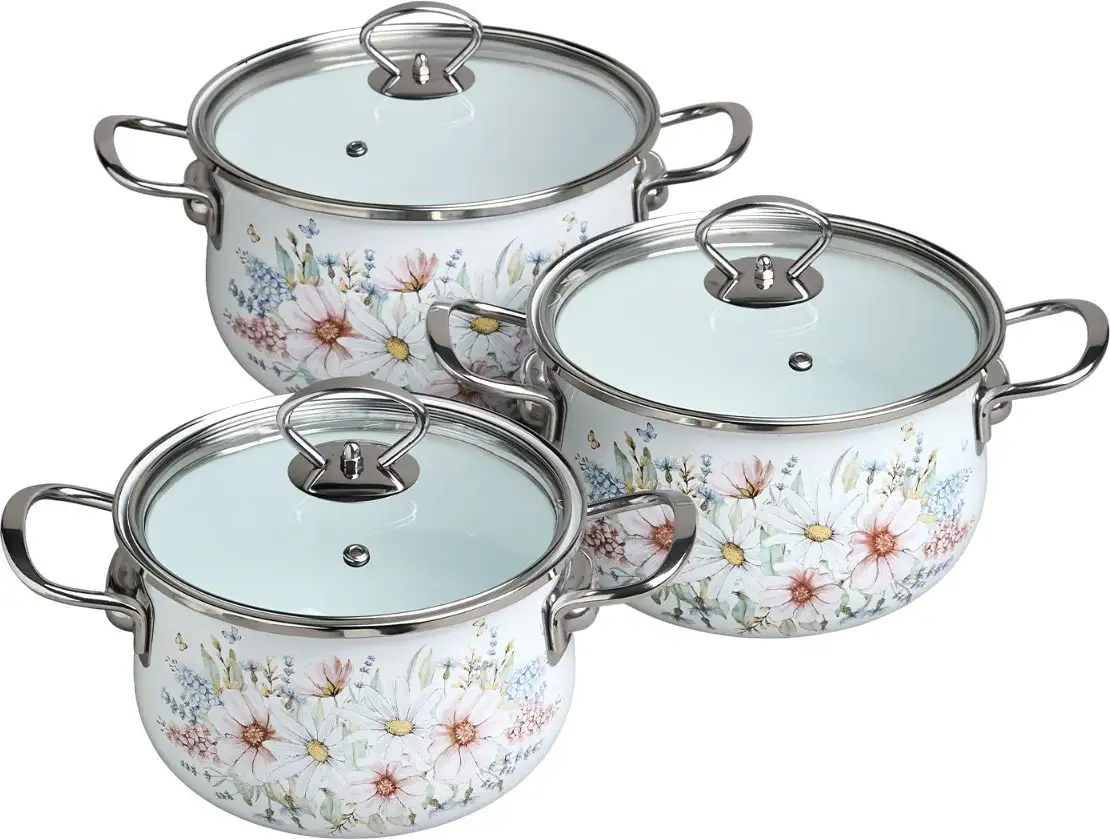 набор кастрюль, 8.4 л (22 см), эмалированная сталь, покрытие отсутствует, крышка стеклянная