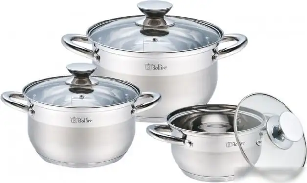 Набор кастрюль Bollire BR-4001 включает три кастрюли из нержавеющей стали с алюминиевым дном толщиной 0,5 мм, что обеспечивает быстрое и равномерное нагревание. Каждая кастрюля имеет стеклянную крышку, позволяющую контролировать процесс приготовления без открытия. Стальные ручки легко снимаются, что удобно для хранения и чистки. Конструкция подходит для использования на газовых, электрических, стеклокерамических и индукционных плитах. Внутреннее покрытие отсутствует, что облегчает очистку и увеличивает долговечность. Кастрюли не пригодны для духовки и микроволновых печей, что важно учитывать при выборе. Благодаря современному дизайну и качественным материалам, этот набор прослужит долго и хорошо справится с повседневными задачами.
