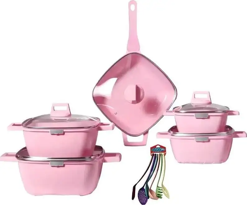 Набор кастрюль FeisiLang FL-21 включает 17 предметов в розовом цвете, сделанных из легкого алюминия. Каждая кастрюля оснащена прочной стеклянной крышкой для удобного контроля за процессом приготовления. Внутри кастрюль находится антипригарное покрытие, которое облегчает приготовление и уборку. Эти кастрюли можно использовать на газовых, электрических и индукционных плитах, что делает их универсальными. Благодаря ручкам из алюминия, их удобно брать и переносить. Набор подходит для мойки в посудомоечной машине, что облегчает уход за посудой. Однако его нельзя использовать в духовке. Кастрюли обладают надежной конструкцией и устойчивы к повседневному использованию. Они отлично подойдут для тех, кто ценит комбинацию стиля и практичности в кухонной посуде.