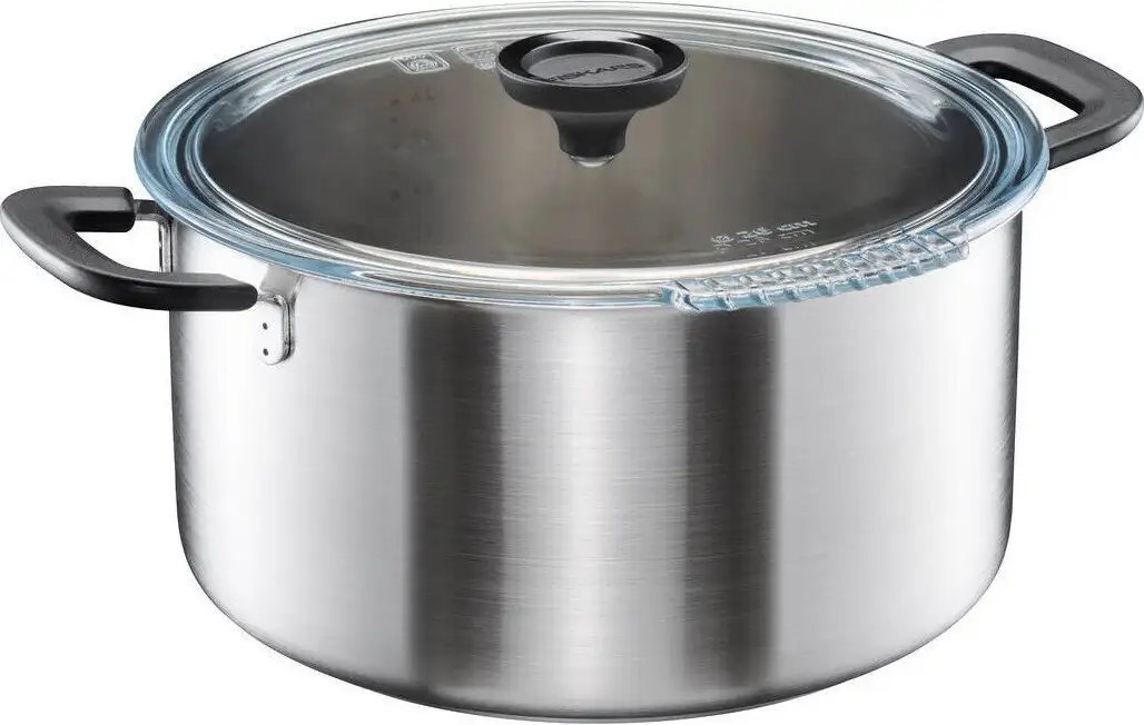 Кастрюля Fiskars Functional Form 1072318 изготовлена из нержавеющей стали и имеет объем 7 литров, что идеально подходит для приготовления больших порций. Ее диаметр составляет 28,5 см, а диаметр дна — 22,2 см, обеспечивая равномерное теплоотдачу. В комплект входит стеклянная крышка с накладками для слива, которая помогает контролировать процесс готовки и сохранять тепло. Кастрюля совместима с газовыми, электрическими, стеклокерамическими и индукционными плитами, что дает большую универсальность. Ее можно безопасно использовать в духовке до 150 градусов и очищать в посудомоечной машине для удобства. Благодаря отсутствию внутреннего покрытия она легко моется и избегает загрязнений. Стеклянная крышка позволяет следить за приготовлением без снятия. Ручка из бакелита обеспечивает теплоизоляцию и комфорт при использовании. Эта кастрюля подходит для тех, кто ценит качество, универсальность и долговечность посуды.