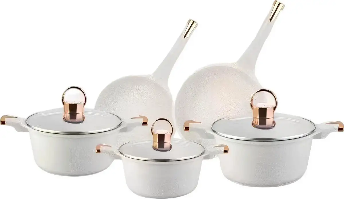 Этот набор кастрюль JIO J02091 включает три кастрюли и одну сковороду из легкого алюминия, которые отлично подходят для приготовления различных блюд. Каждая кастрюля и сковорода покрыты антипригарным фторопластовым слоем, что облегчает готовку и уборку. В набор входит стеклянная крышка с отверстием для пара, которая позволяет контролировать процесс готовки и избегать брызг. Кастрюли совместимы с газовыми и электрическими плитами, что делает их универсальными. Ручки из алюминия крепко фиксируются и не нагреваются, обеспечивая безопасное обращение. Все элементы можно мыть в посудомоечной машине, что экономит ваше время. Набор выполнен в белом цвете, он хорошо впишется в любую кухню. Он предназначен для ежедневного использования и отлично подходит для семейных обедов и ужинов.
