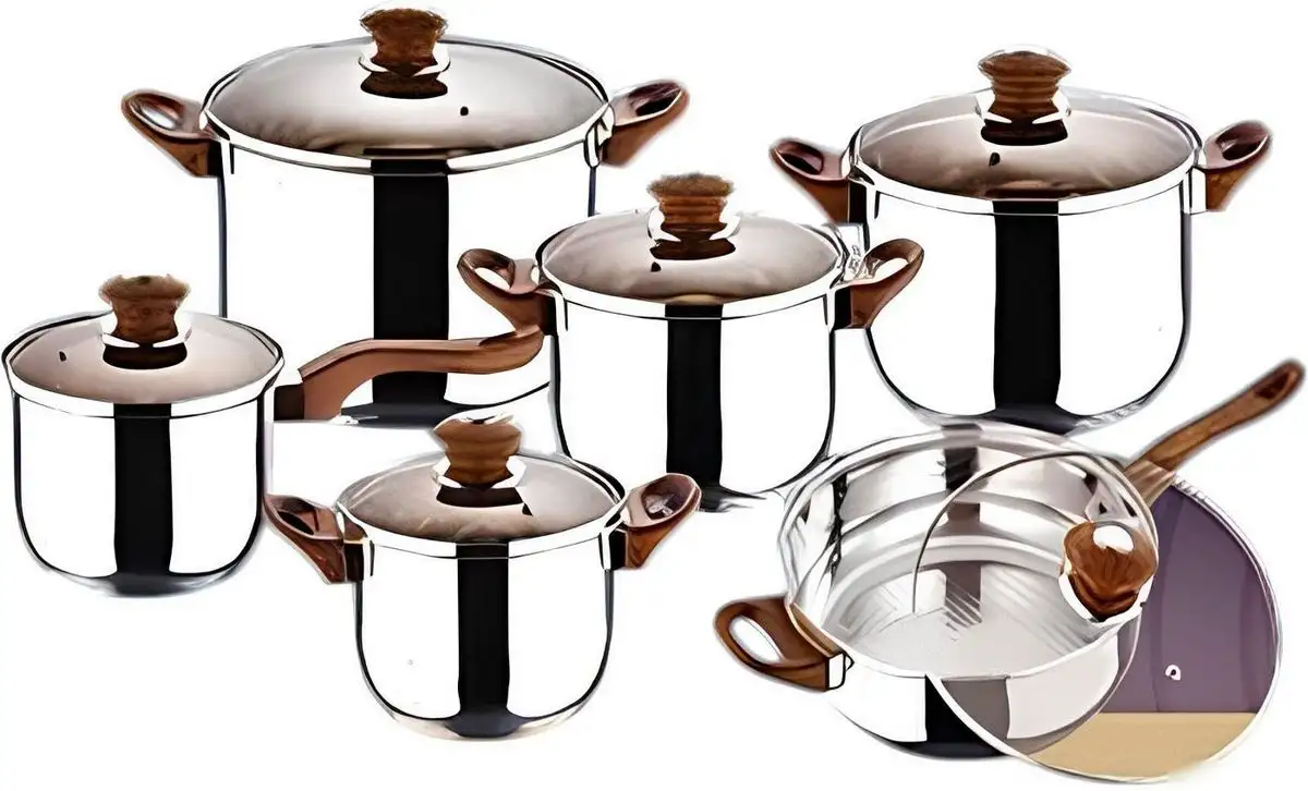 набор кастрюль, нержавеющая сталь, покрытие отсутствует, крышка стеклянная