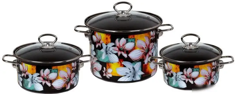 набор кастрюль, эмалированная сталь, покрытие отсутствует, крышка стеклянная