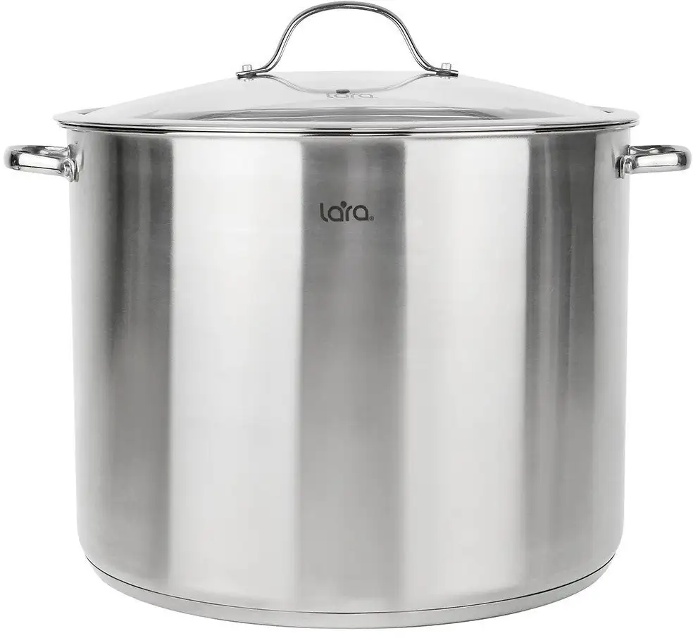 Кастрюля Lara Атлант LR02-902 выполнена из нержавеющей стали и подходит для всех типов плит, включая газ, электричество, стеклокерамику и индукцию. Ее объем 20,9 литров позволяет готовить большие порции пищи. Диаметр кастрюли — 32 см, а высота — 26 см, что удобно для приготовления различных блюд. Кастрюля комплектуется стеклянной крышкой с отверстием для выпуска пара, что помогает регулировать давление и избегать проливания. Стальная ручка обеспечивает надежный захват и долговечность. Кастрюля не имеет внутреннего покрытия, что облегчает очистку и предотвращает появление царапин. Она не предназначена для использования в посудомоечной машине, духовке или микроволновой печи. Внутренняя поверхность не имеет специальных покрытий, сохраняет естественный вкус и качество продуктов. Кастрюля идеально подходит для ежедневного использования благодаря прочной конструкции и универсальности.