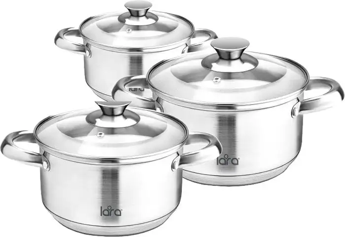 Этот набор кастрюль Lara Чикаго LR02-77 выполнен из нержавеющей стали и подходит для всех типов кухонных плит, включая газ, электро, стеклокерамику и индукцию. В набор входят три кастрюли объемом 1,7 л, 3,4 л и 5,9 л, каждая с прозрачной крышкой из стекла, что позволяет удобно следить за процессом приготовления. Благодаря качественной нержавеющей стали кастрюли долговечны и легко моются в посудомоечной машине. Современная конструкция без внутреннего покрытия делает их безопасными для здоровья. Стальные ручки позволяют надежно держать посуду при переносе. Можно использовать как в духовке, так и на плите, что увеличивает возможности приготовления. Легкий уход и универсальность делают этот набор удобным выбором для любой кухни.