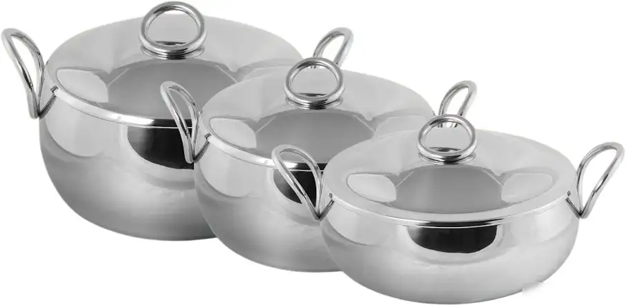 | Состав набора | кастрюля (3 шт.), крышка (3 шт.) |