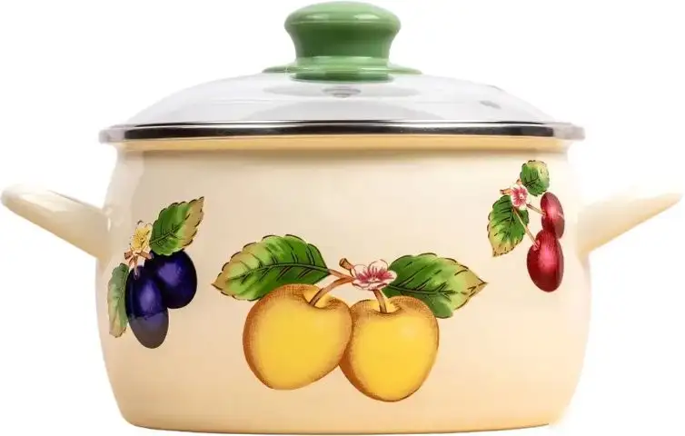 Кастрюля Metrot 383747 изготовлена из эмалированной стали и подходит для газовых, электрических и индукционных плит. Ее объем составляет 5,4 литра, диаметр 22 см, а высота — 14 см, что позволяет готовить большие порции. Толщина дна 1 мм обеспечивает равномерное распределение тепла и долговечность. В комплект входит стеклянная крышка с отверстием для выпуска пара, которая помогает контролировать процесс готовки. Кастрюля легко моется в посудомоечной машине и оснащена удобной стальной ручкой. Приятный бежевый цвет с ярким принтом делает её стильной на кухне. Благодаря прочной конструкции она прослужит много лет. Эта кастрюля идеально подходит для разнообразных блюд и удобна в использовании.