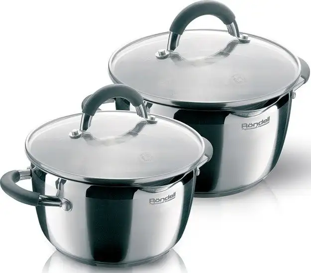 Этот набор кастрюль Rondell RDS-339 выполнен из нержавеющей стали и подходит для всех видов конфорок: газовых, электрических, стеклокерамических и индукционных. Каждая кастрюля имеет толстое — 5 мм — дно, что обеспечивает равномерное распределение тепла и долговечность. В комплект входит две кастрюли с прозрачными стеклянными крышками, оставляющими видимым процесс приготовления. Кастрюли легко моются в посудомоечной машине и не предназначены для использования в духовке или микроволновой печи. Стальная ручка с изоляцией обеспечивает комфорт и безопасность при использовании. Конструкция исключает внутреннее покрытие, что делает поверхность более гигиеничной и долговечной. Благодаря классическому дизайну в нержавеющей стали, кастрюли отлично впишутся в любой кухонный интерьер.