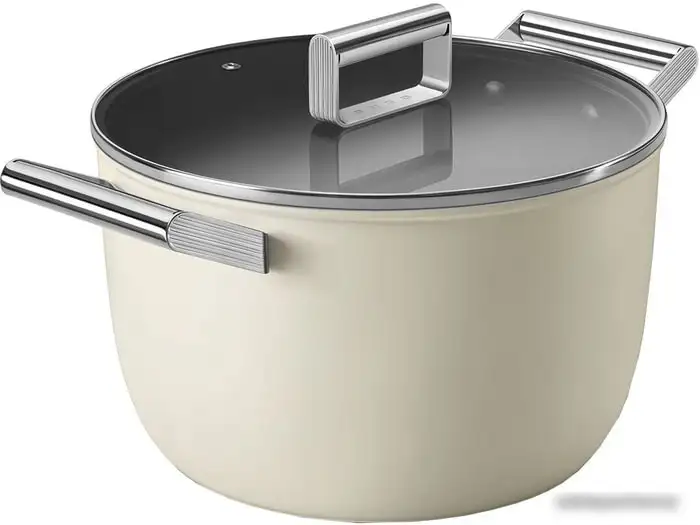 Кастрюля Smeg CKFC2611CRM вместимостью 7,7 литров идеально подходит для приготовления больших порций. Она изготовлена из лёгкого алюминия с дном из нержавеющей стали, что обеспечивает прочность и равномерное распределение тепла. Диаметр посуды 26 см, а высота — 17,4 см, что делает её удобной для различных блюд. Толщина дна 5 мм гарантирует долговечность и хорошую теплоизоляцию. Внутреннее покрытие из PTFE предотвращает пригорание и облегчает уборку. Кастрюля совместима с газовыми, электро-, стеклокерамическими и индукционными плитами. В комплект входит стеклянная крышка, которая позволяет контролировать процесс приготовления. Посуда безопасна для мытья в посудомоечной машине и может использоваться в духовке. Ручка выполнена из стальной вставки для надежности и долговечности. Эта кастрюля — практичный выбор для тех, кто ценит качество и удобство в повседневной готовке.
