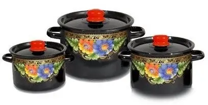набор кастрюль, эмалированная сталь, покрытие отсутствует, крышка стальная