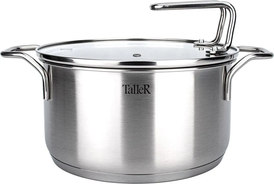 Кастрюля Taller Инесс TR-17258 выполнена из нержавеющей стали, что обеспечивает долговечность и хороший внешний вид. Она имеет объем 5 литров и диаметр 24 см, что идеально подходит для приготовления семейных блюд. Толстое дно толщиной 4 мм помогает равномерно распределять тепло, а крышка со стеклом и отверстием для выпуска пара позволяет контролировать процесс готовки. Внутреннего покрытия у кастрюли нет, она подходит для использования на газовых, электронных, стеклокерамических и индукционных плит. Ручка выполнена из нержавеющей стали, что повышает надежность и долговечность. Кастрюлю можно мыть в посудомоечной машине, она не предназначена для использования в духовке или микроволновке. На боковой стороне есть мерная шкала для удобства при приготовлении. Классический дизайн и практичные функции делают эту кастрюлю удобным выбором для повседневных нужд.