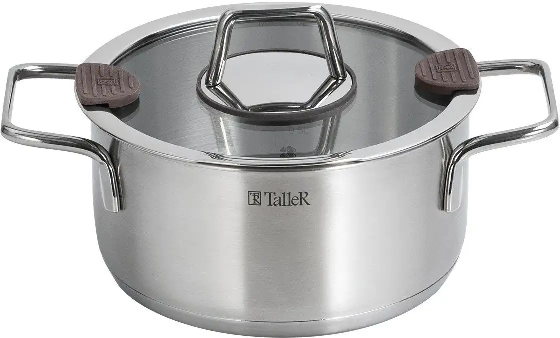 Кастрюля Taller Каскад TR-11033 выполнена из нержавеющей стали и имеет объем 3 литра. Она подходит для всех типов конфорок, включая газовые, электрические, стеклокерамические и индукционные плиты. Диаметр кастрюли составляет 20 см, а диаметр дна — 18,5 см, что обеспечивает равномерное нагревание. Высота изделия — 10,5 см, а толщина дна — 2,9 мм. В комплект входит стеклянная крышка с отверстиями для слива и мерная шкала, что помогает удобно готовить и контролировать процесс. Ручка из нержавеющей стали надежно крепится к корпусу, а сама кастрюля подойдет для мойки в посудомоечной машине, что облегчает уход. Ее оформление в серебристом цвете отлично вписывается в любой кухонный интерьер. Благодаря прочной конструкции и практичным функциям, кастрюля эффективно используется для варки и тушения различных блюд.