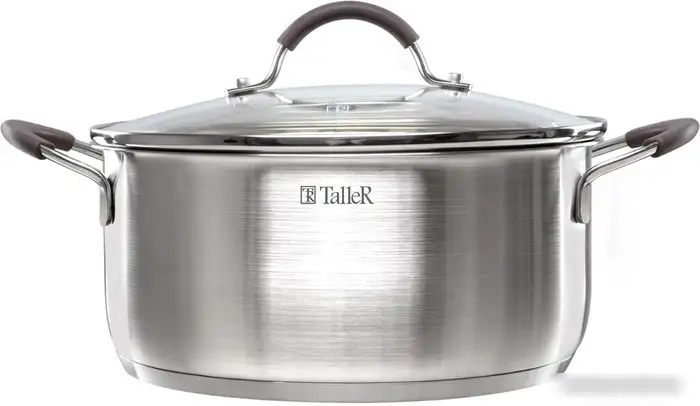 | Информация | ? Кастрюля TalleR TR-11024 изготовлена из нержавеющей стали 18/10. ? Кастрюля имеет капсулированное дно для равномерного распределения тепла. ? Внешняя поверхность кастрюли матовая, а внутренняя также матовая. ? Кастрюля оснащена отметками литража. ? Крышка кастрюли выполнена из жаропрочного стекла с стальным ободом и отверстием для выхода пара. ? Ручки кастрюли изготовлены из нержавеющей стали с силиконовой вставкой, которая предотвращает скольжение даже при намокании. ?? Силиконовые вставки на ручках имеют коричневый цвет. ? Кастрюля подходит для всех типов плит, включая индукционные. ?? Не рекомендуется использовать кастрюлю в духовом шкафу. ? Кастрюля пригодна для мойки в посудомоечной машине. |