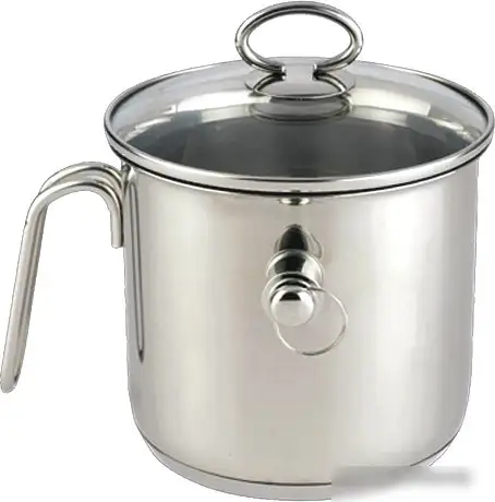 Молочник TimA G-16К выполнен из нержавеющей стали, что обеспечивает его долговечность и легко моется в посудомоечной машине. Он имеет объем 2 литра и поставляется с удобной стеклянной крышкой, которая удерживает тепло и предотвращает разлив. Молочник совместим со всеми типами конфорок, включая газовые, электрические, стеклокерамические и индукционные плиты, что удобно при использовании на любой кухне. Стальная ручка надежно крепится и не съемная, что обеспечивает комфорт при наливании и переноске. Благодаря стойкому материалу и прочной конструкции, молочник подходит для повседневного использования. Он не подходит для микроволновых печей, что следует учитывать при хранении и использовании. Отсутствие внутреннего покрытия облегчает уход за изделием и исключает риск появления царапин. Молочник идеально подходит для заваривания и подачи горячих напитков и блюд, обладая прочной и стильной конструкцией. Он сочетает практичность и современный дизайн, что делает его полезным аксессуаром на любой кухне.