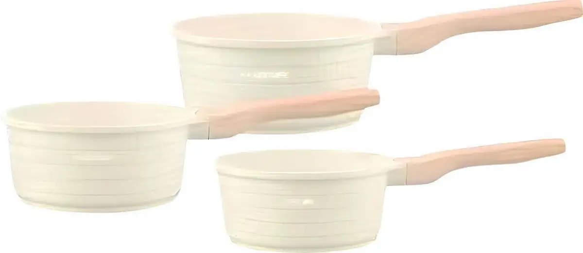 Этот набор кастрюль UCC Life UC-n1303 состоит из трёх металлических кастрюль с антипригарным внутренним покрытием, которое облегчает приготовление и чистку. В комплект также входит набор ковшей для удобства при сервировке и готовке. Все кастрюли подходят для газовых, электрических и индукционных плит, что делает их универсальным решением для любой кухни. Ручки выполнены из бакелита, они безопасны и надежны, а их отсутствие съемных ручек делает конструкцию более прочной. Набор не комплектуется крышками, что упрощает его использование. Материал из алюминия обеспечивает быстрое и равномерное нагревание. Все кастрюли можно мыть в посудомоечной машине, что экономит ваше время и усилия. Благодаря элегантным бежевым и белым оттенкам, набор красиво впишется в современный интерьер кухни.